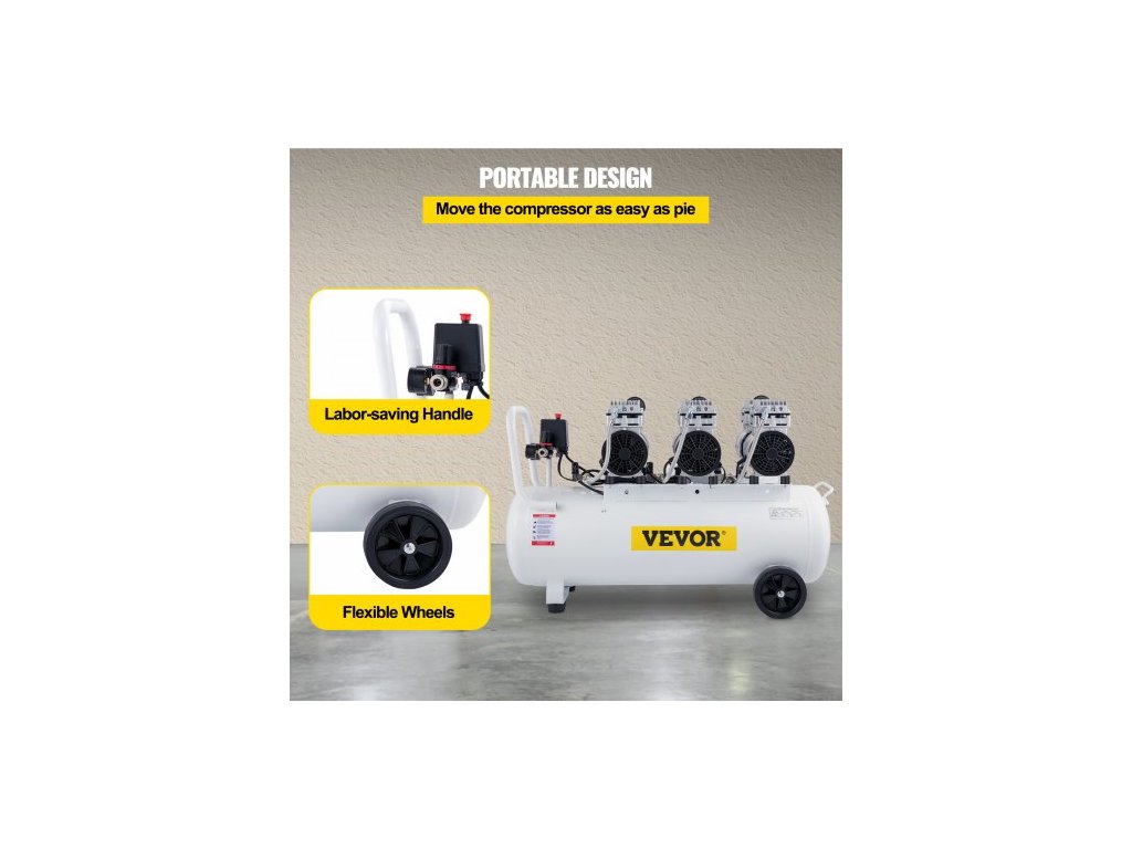 Vzduchový kompresor 22galonový ultra tichý bezolejový vzduchový kompresor s nádrží 100 l, tichý vzduchový kompresor 2,2 kW, bezolejový kompresor, nízká hlučnost s bezpečným solenoidovým ventilem