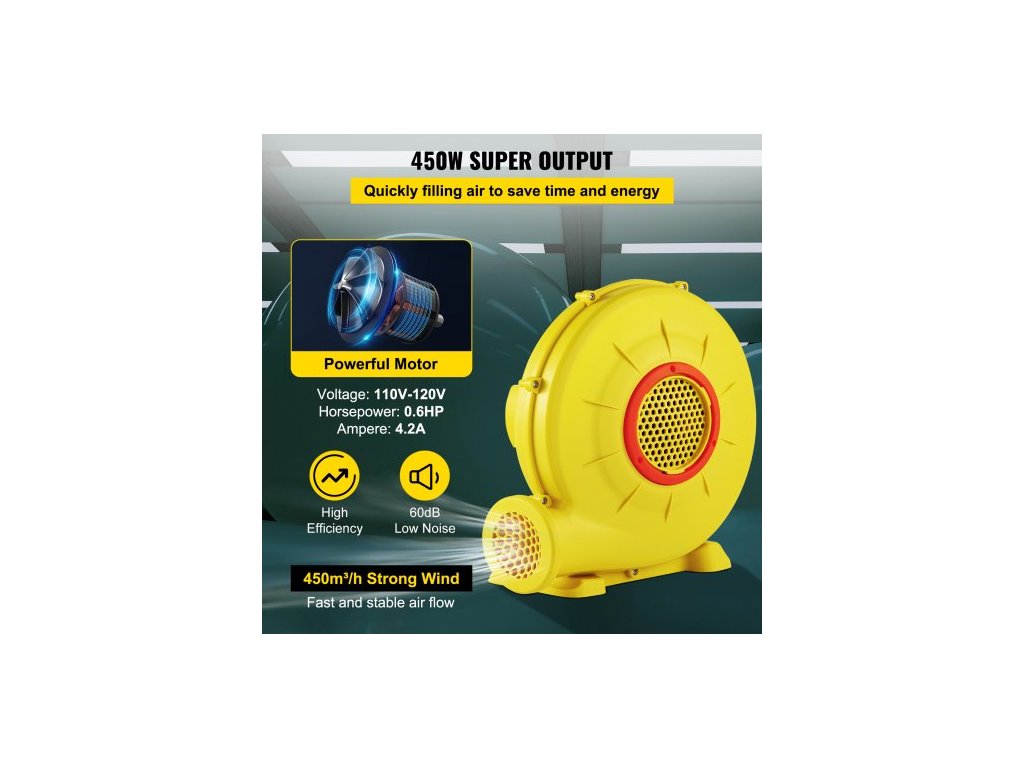 Vzduchové dmychadlo pro nafukovací skákací hrad 450W 0,6HP foukací pumpa Vzduchová pumpa
