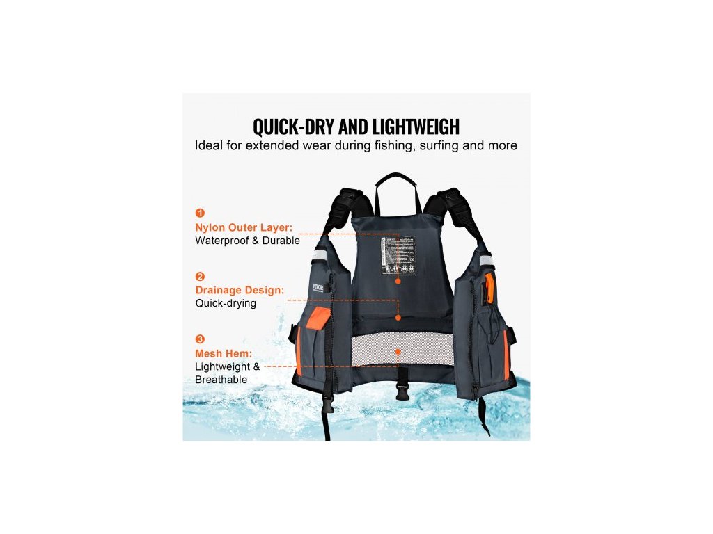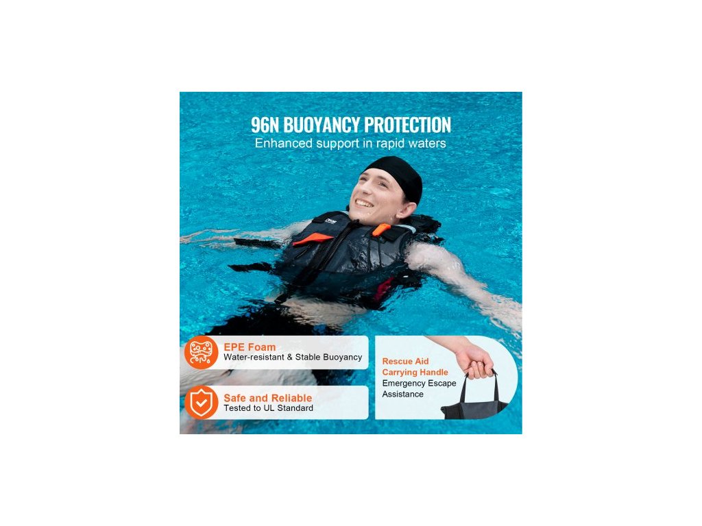 Záchranná vesta pro vodní sporty (PFD), Záchranná vesta s nepromokavým nylonem a vztlakem 96N, Záchranná vesta/bunda pro jakékoli vodní aktivity - rybaření, jízdu na kajaku, surfování a další, pro muže a ženy, velikost L