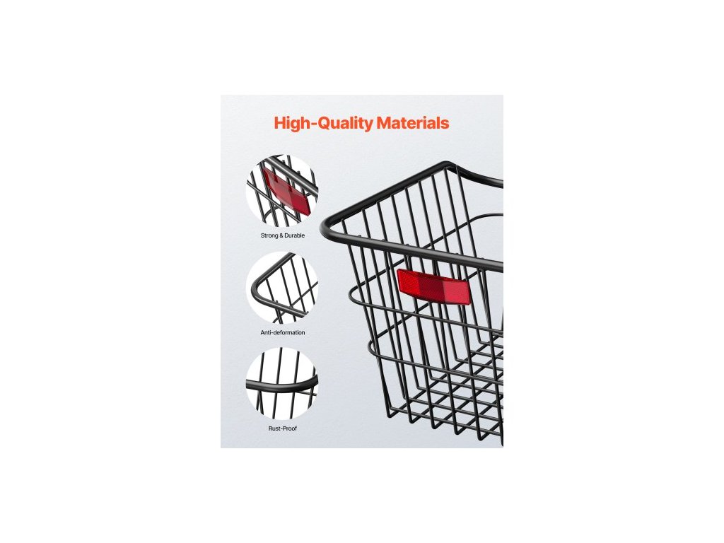 Zadní košík na kolo , kovový drátěný košík na kolo s reflexním zadním světlem a vodotěsným krytem, odolný košík na kolo, pasuje na většinu zadních nosičů kol