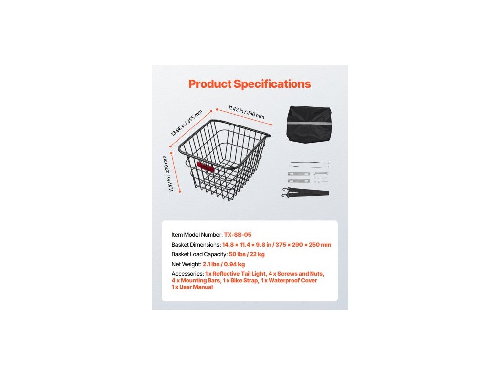 Číslo modelu položky: TX-SS-05,Rozměry koše: 375 x 290 x 250 mm,Čistá hmotnost: 0,94 kg,Nosnost koše: 22 kg