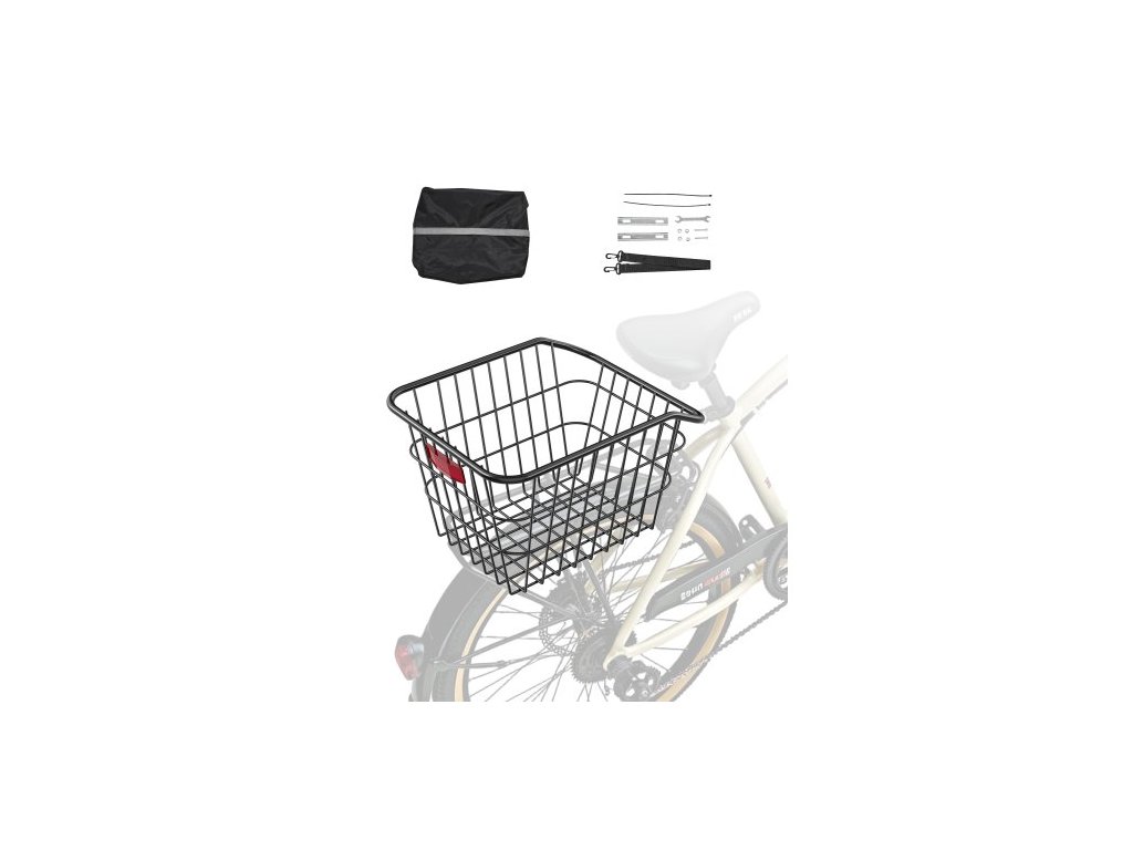 Zadní košík na kolo , kovový drátěný košík na kolo s reflexním zadním světlem a vodotěsným krytem, odolný zadní košík na kolo, pasuje na většinu zadních nosičů kol