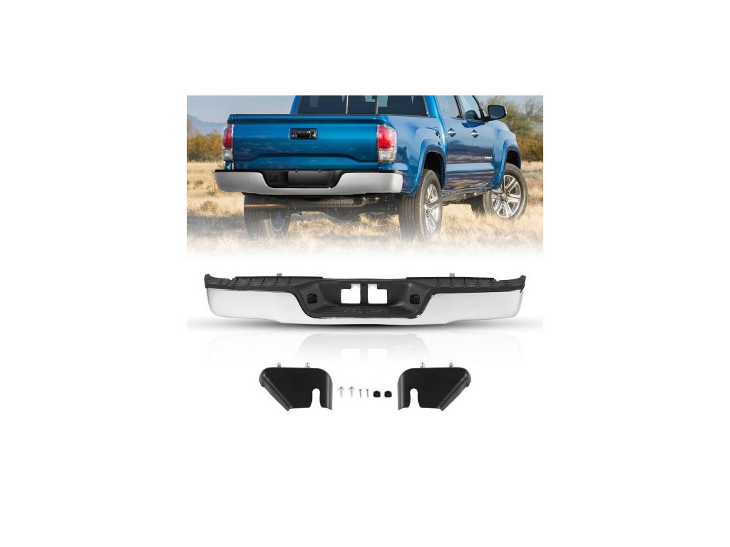 Zadní nárazník , kompatibilní s vozy Toyota Tundra 2007-2013, chromovaný ocelový zadní nárazník, náhradní sestava zadního nárazníku s osvětlením registrační značky a nášlapnou plochou, bez otvorů pro senzory, pro TO1103117