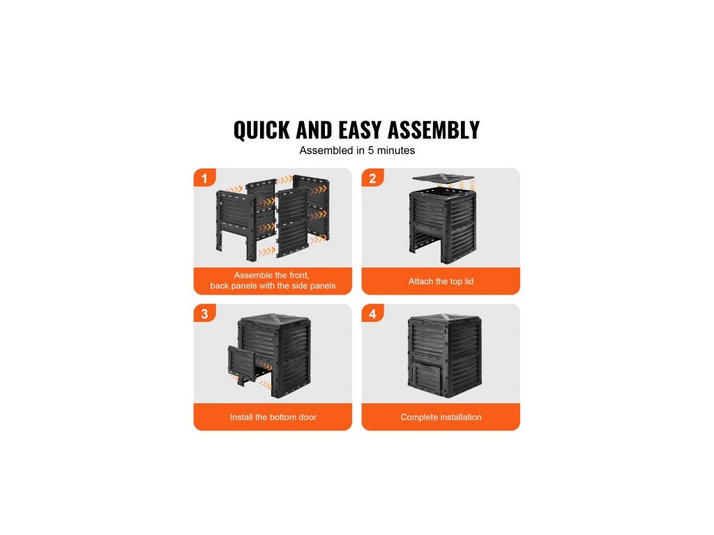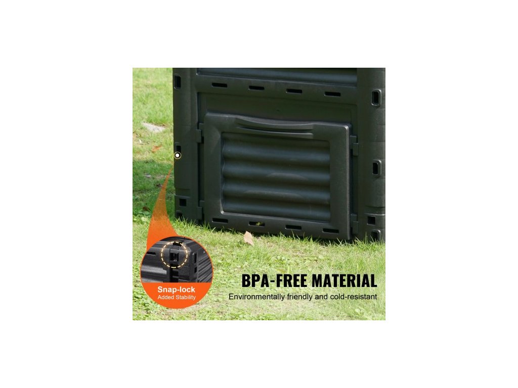 Zahradní kompostér o objemu 80 galonů, kompostér bez BPA, velkokapacitní venkovní kompostér s horním víkem a spodními dvířky, snadná montáž, nízká hmotnost, rychlé vytváření úrodné půdy