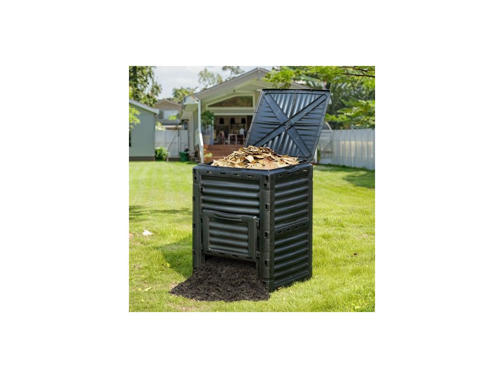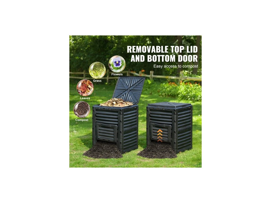 Zahradní kompostér 80 galonů, kompostér bez BPA, velkokapacitní venkovní kompostér s horním víkem a spodními dvířky, snadná montáž, nízká hmotnost, rychlé vytváření úrodné půdy