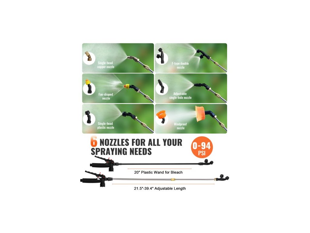 Zahradní postřikovač s 15litrovou nádrží, 0–94 PSI