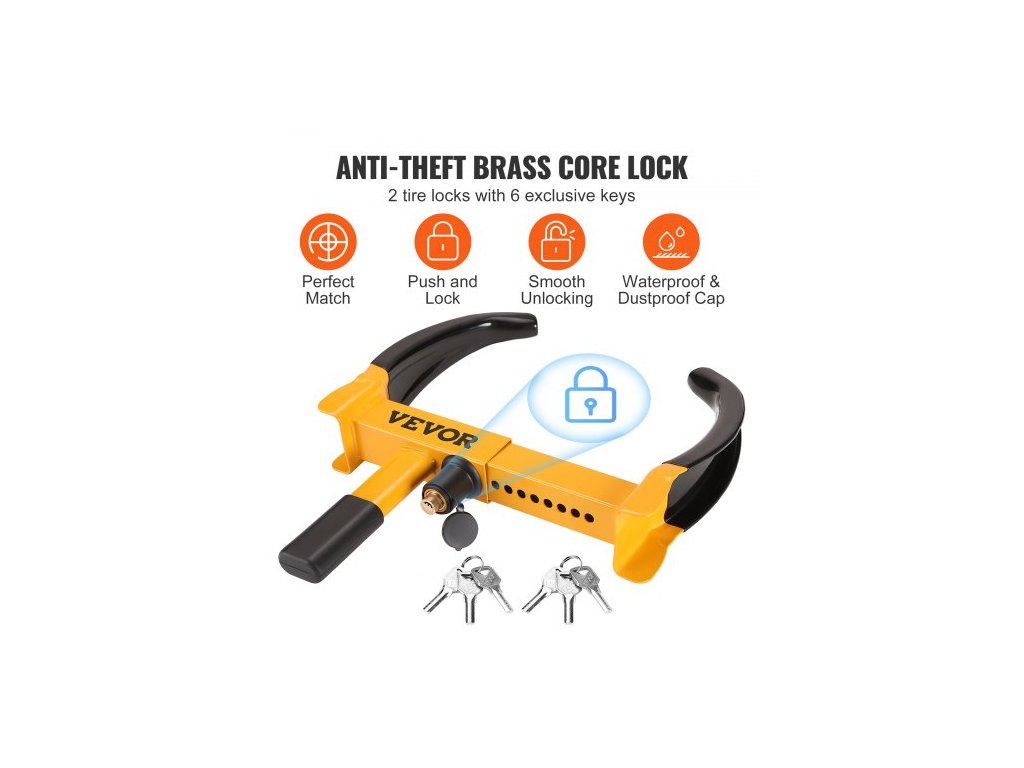 Zámek kola , 2 balení univerzálních svorek na kola, nastavitelná svorka na kolo s ochranou proti krádeži, odolný ocelový zámek na pneumatiky pro čtyřkolky, obytné vozy, SUV, auta, golfové vozíky, lodě, motocykly, se 6 klíči