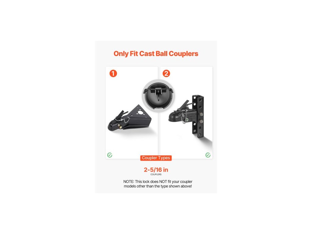 Zámek přívěsu , pasuje na lité kulové spojky 58,6 mm, odolný zámek tažného zařízení se 3 klíči, zajišťuje bezpečnostní řetězy, odolný proti korozi, zámky proti krádeži pro obytné vozy, přívěsy a lodě