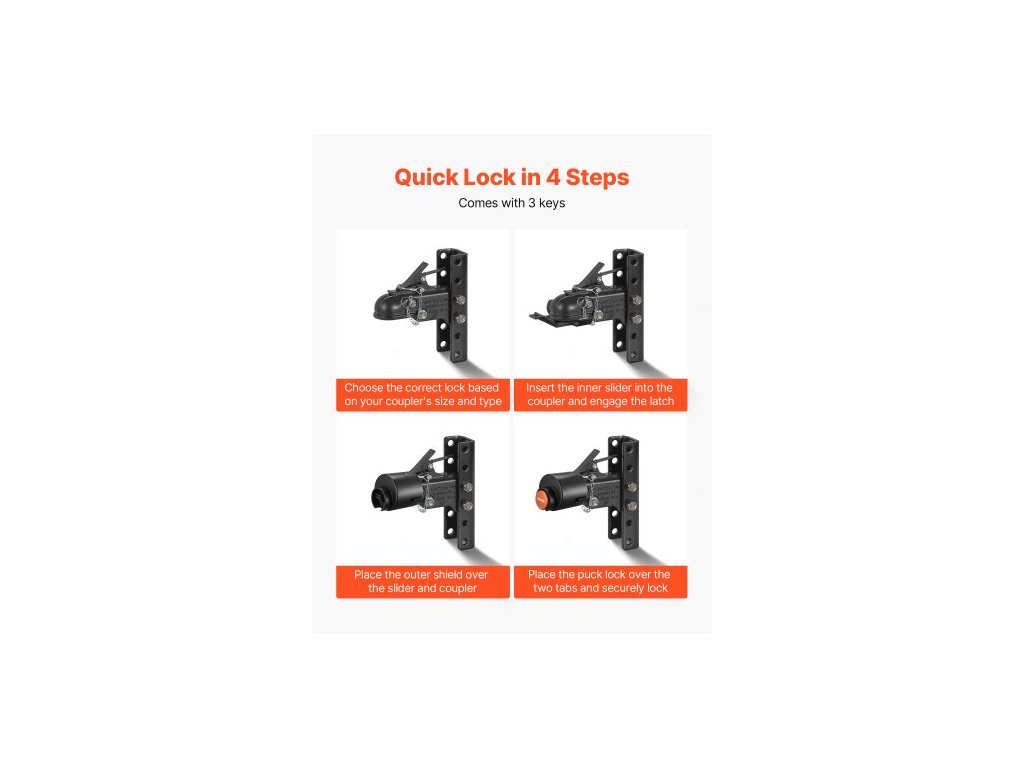 Zámek přívěsu , pasuje na lité kulové spojky 58,6 mm, odolný zámek tažného zařízení se 3 klíči, zajišťuje bezpečnostní řetězy, odolný proti korozi, zámky pro obytné vozy, přívěsy a lodě s ochranou proti krádeži