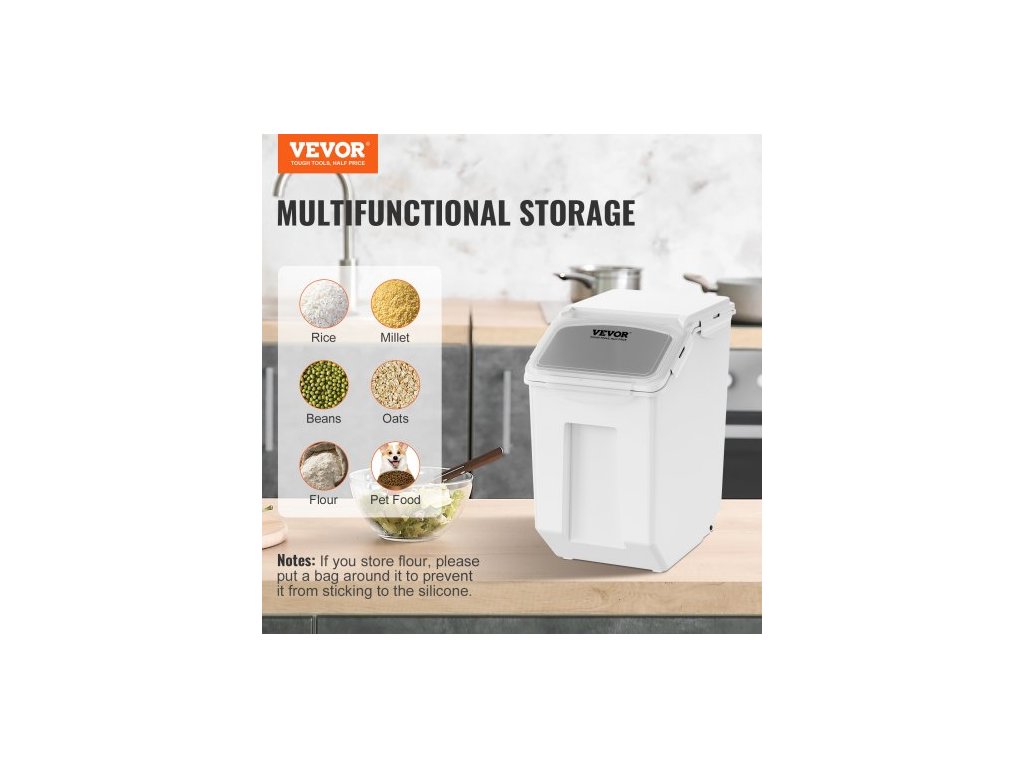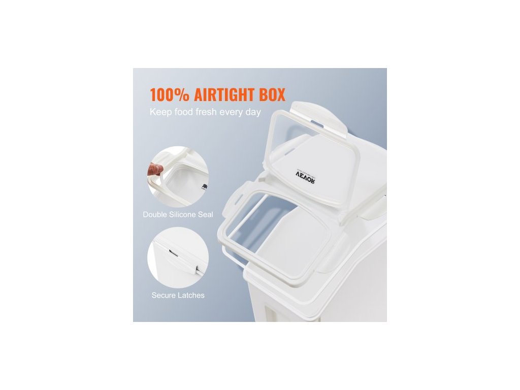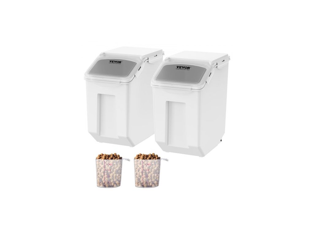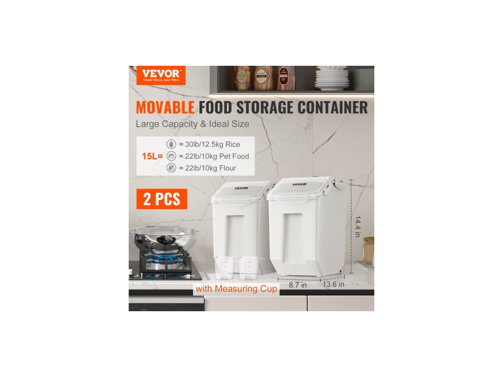 Zásobník na ingredience, 2 x 15l dávkovač s 2 odměrkami, připevnitelnými kolečky a vzduchotěsným víkem, 2 ks/sada nádob na krmivo pro psy a domácí mazlíčky, materiál PP, kuchyňská rýže a mouka