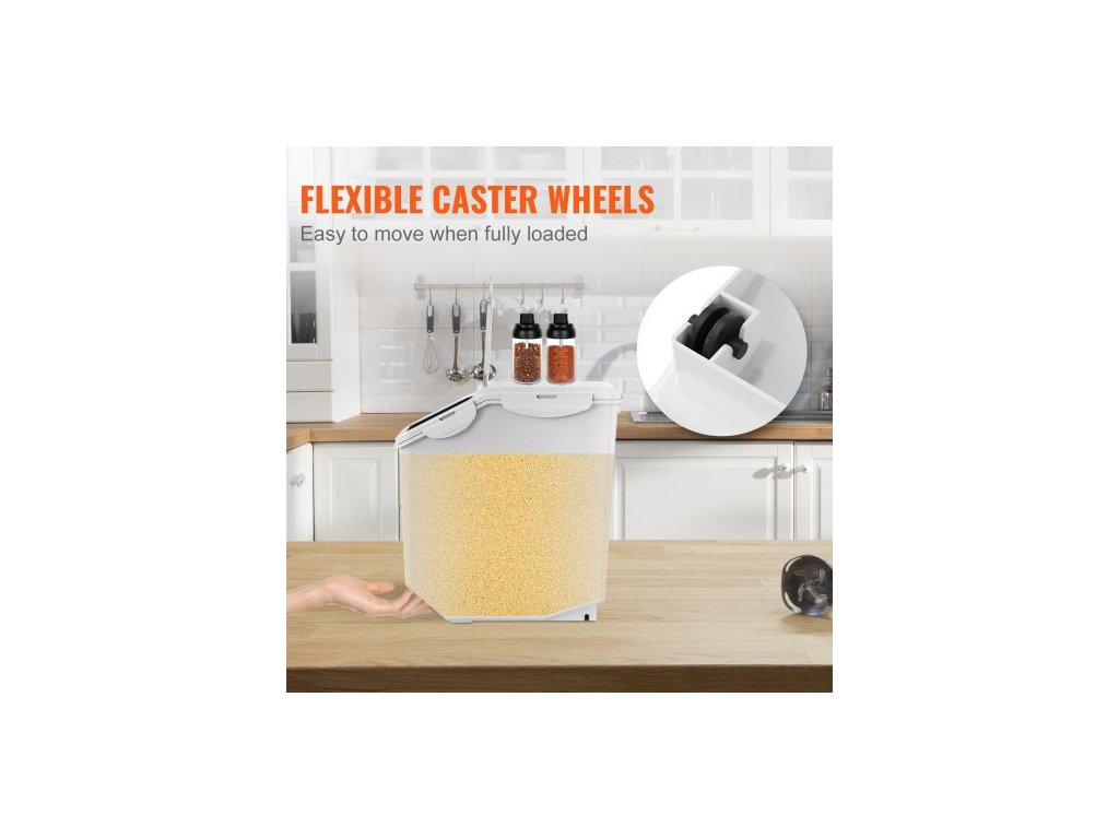 Zásobník na ingredience, 2 x 15l dávkovací koš se 2 odměrkami, připevnitelná kolečka a vzduchotěsné víko, sada 2 ks nádob na krmivo pro psy a domácí mazlíčky, nádoba na kuchyňskou rýži a mouku z materiálu PP