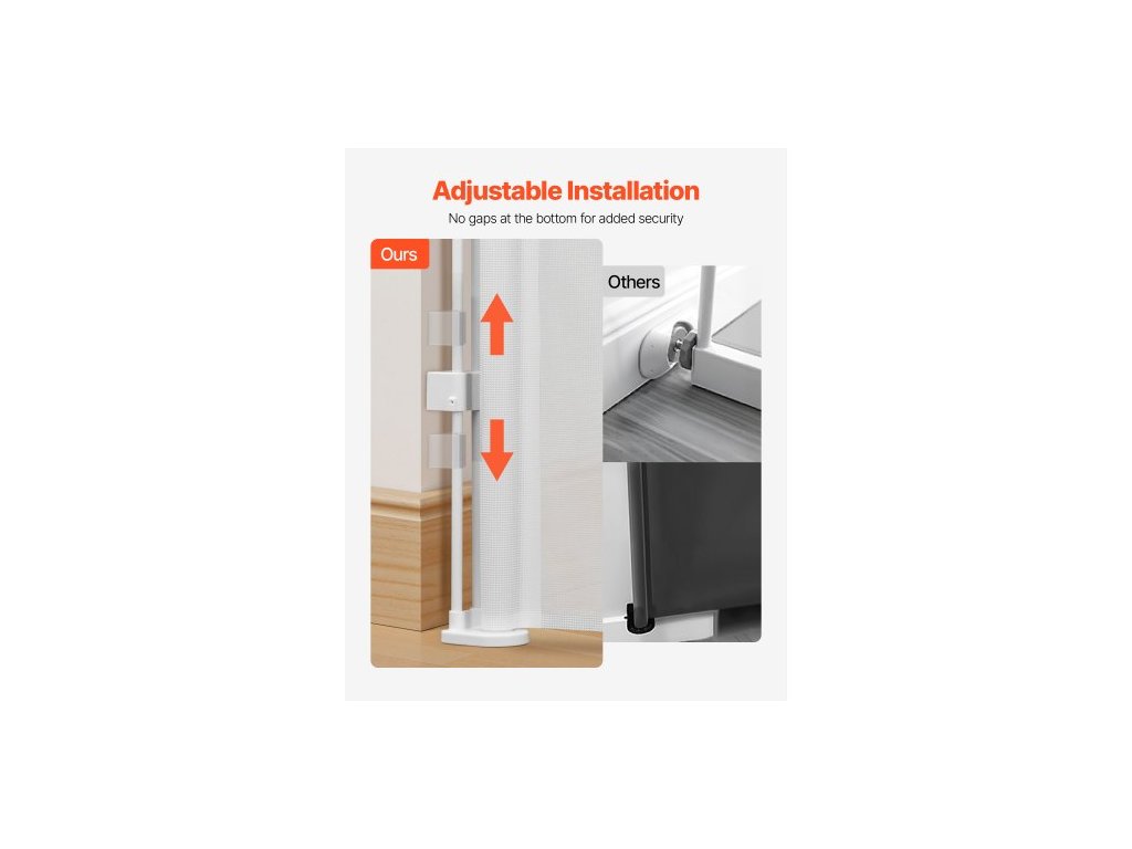 Zatahovací dětská branka , výška 870 mm, roztažitelná až do šířky 1800 mm, zatahovací branka pro děti nebo domácí mazlíčky, síťovina, snadná instalace pro vnitřní schodiště, dveře, chodby, herny, bílá