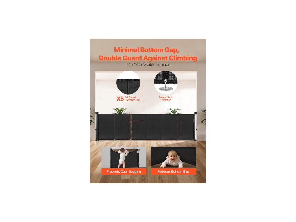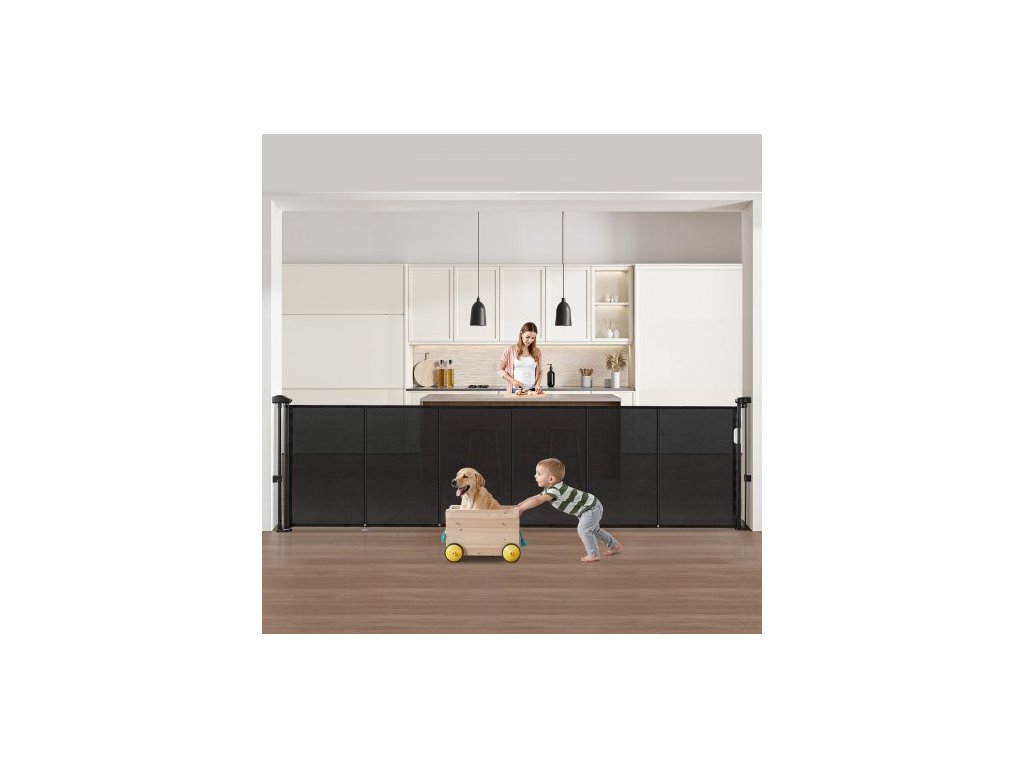 Zatahovací dětská branka, výška 870 mm, roztažitelná až na 2800 mm, Zatahovací branka pro děti nebo domácí mazlíčky, síťovina, snadná instalace pro vnitřní schodiště, dveře, chodby, herny, černá