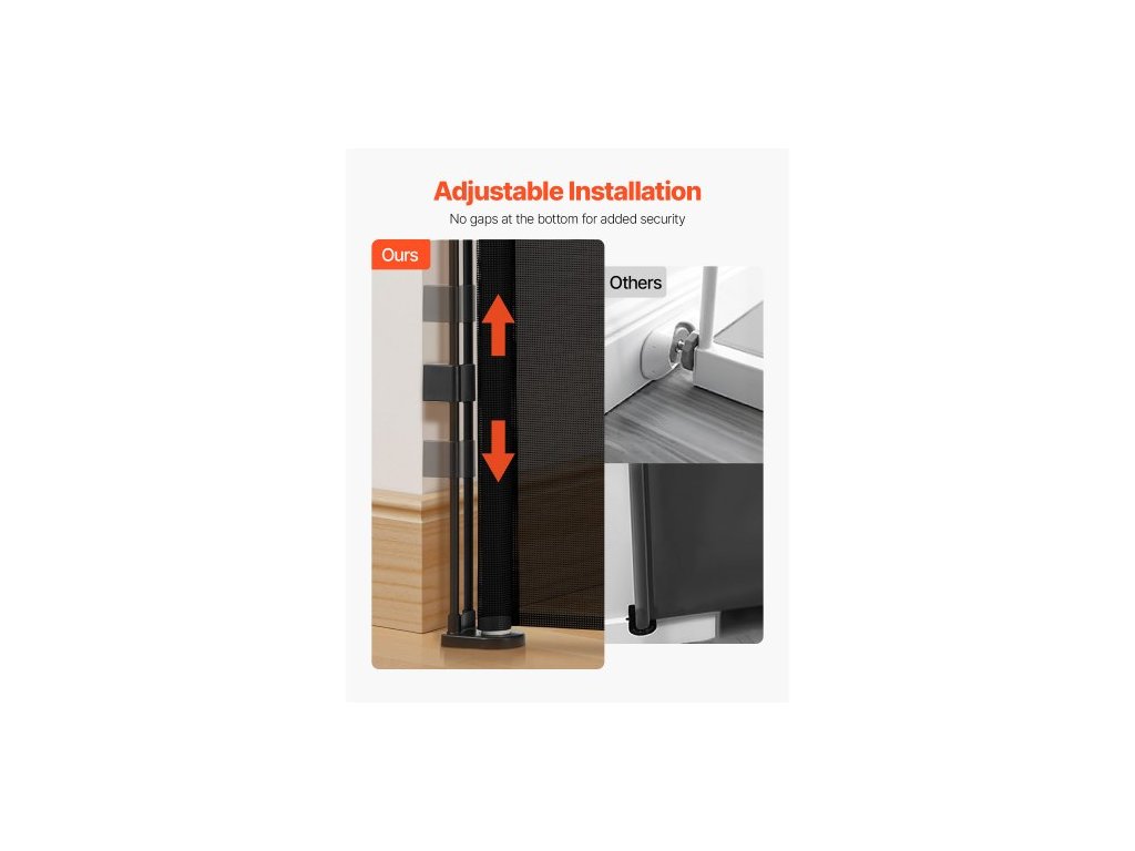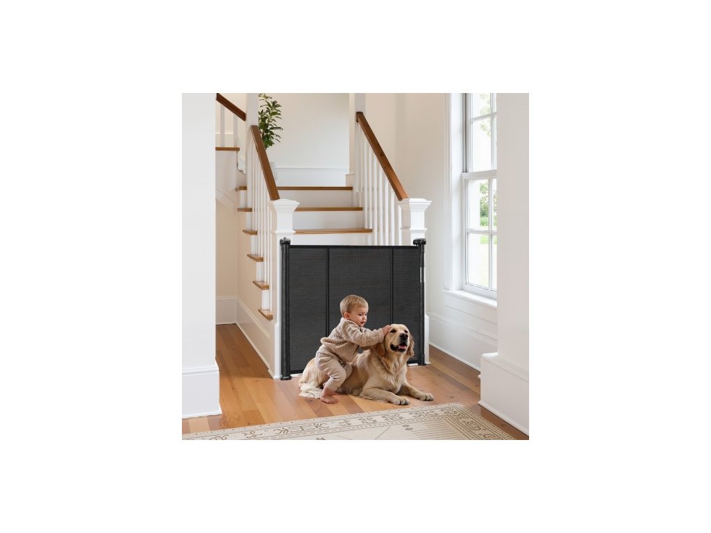 Zatahovací dětská branka , výška 870 mm, roztažitelná až do šířky 2800 mm, zatahovací branka pro děti nebo domácí mazlíčky, síťovina, snadná instalace pro vnitřní schodiště, dveře, chodby, herny, černá