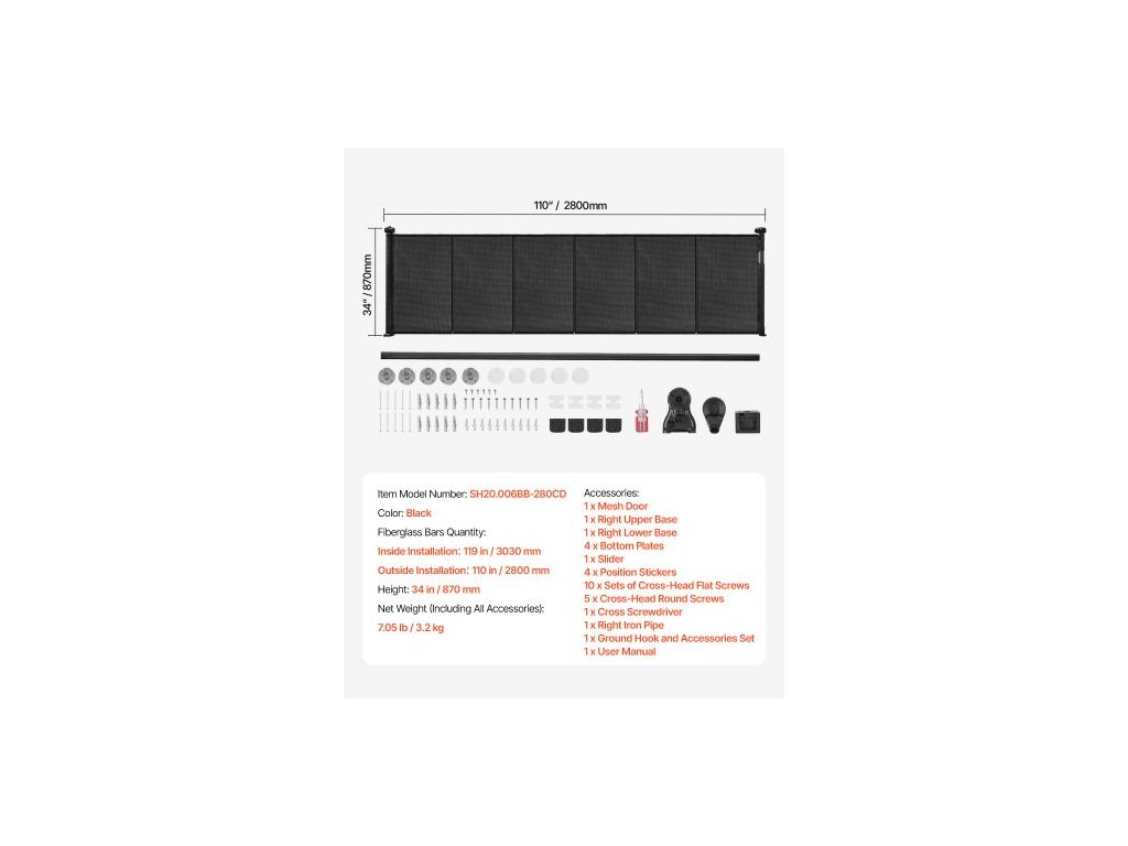 Čistá hmotnost (včetně veškerého příslušenství): 7,05 lb / 3,2 kg,Barva: Černá,Číslo modelu položky: SH20.006BB-280CD,Maximální šířka rozložené clony (vnější instalace): 110 palců / 2800 mm,Celková výška: 34 palců / 870 mm