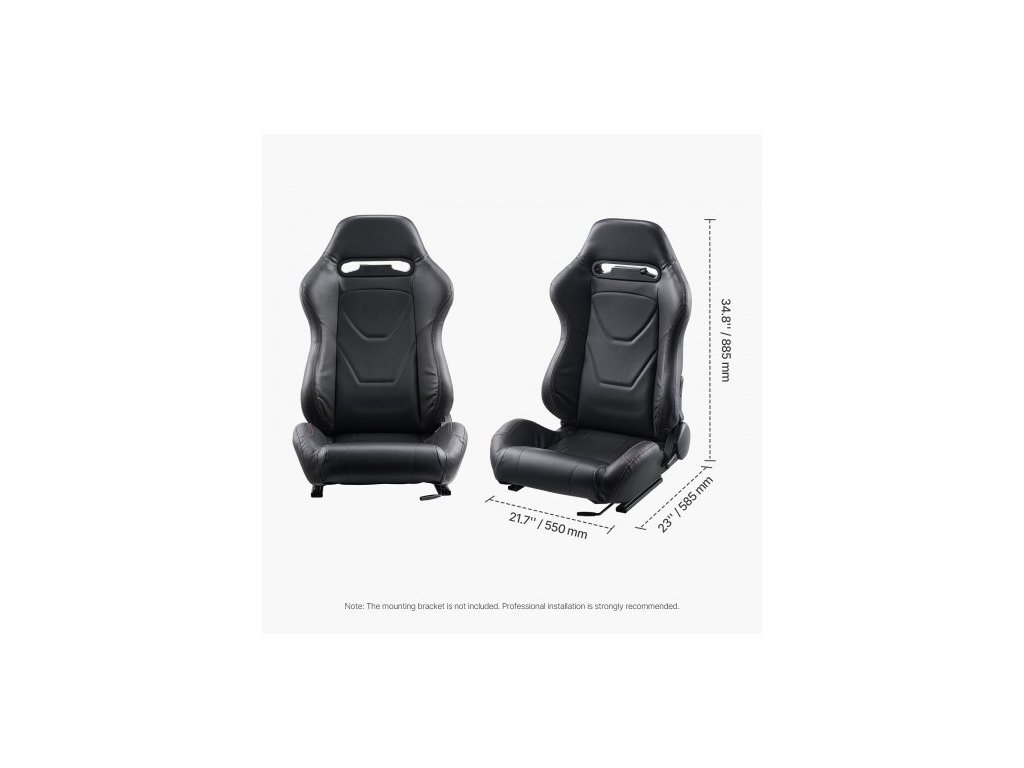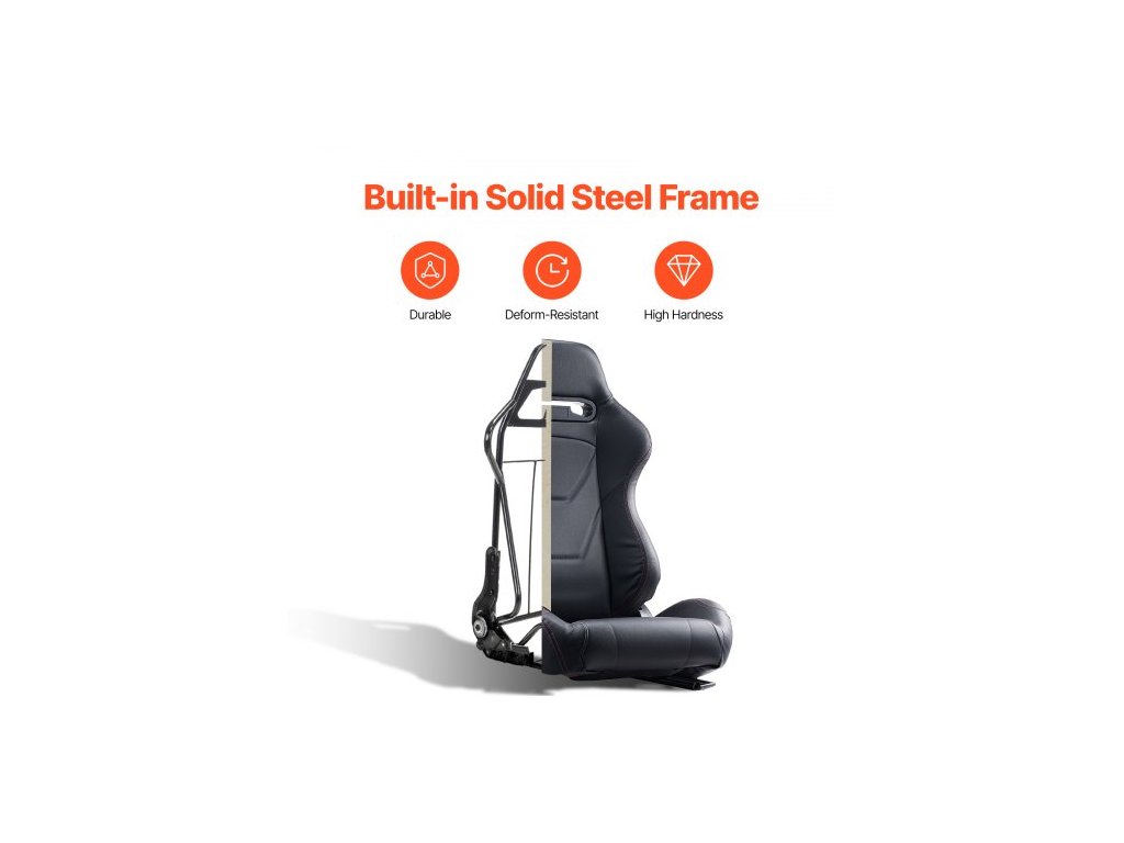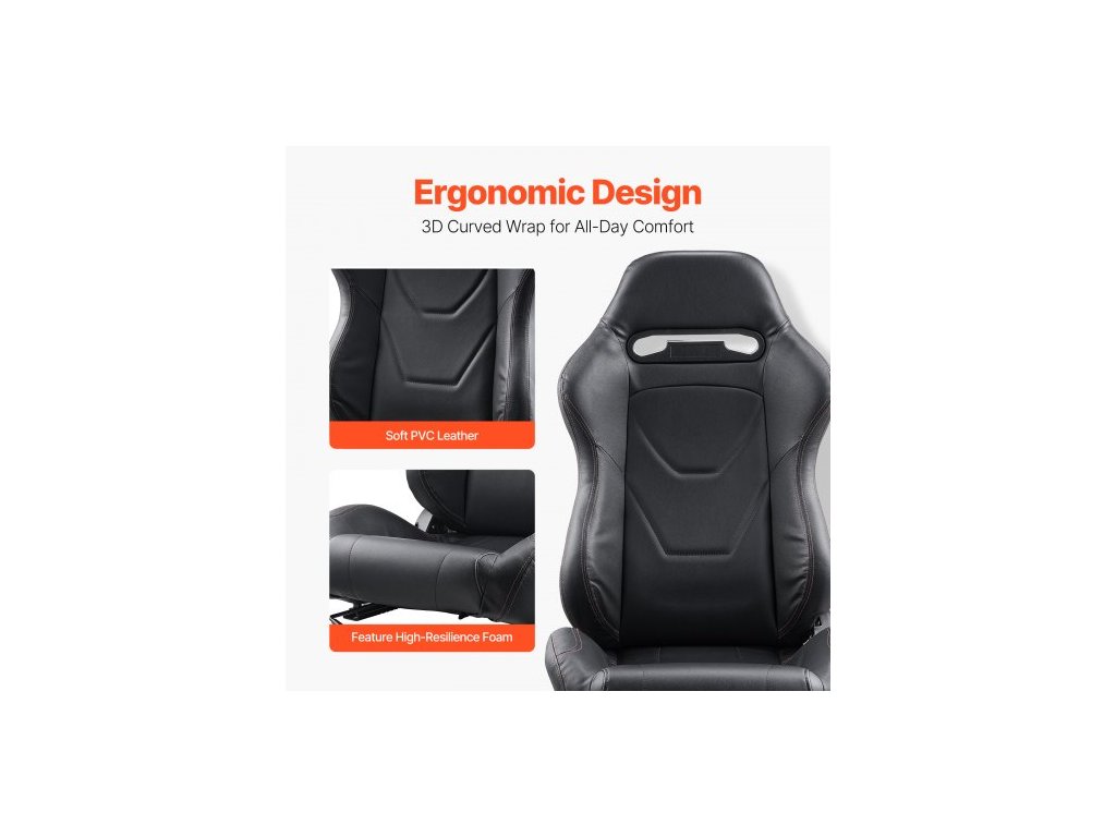 Závodní sedadlo , sada 2 kusů, nastavitelný závodní kokpit s širokým úhlem sklápění a vysoce odolnou pěnou, pohodlné závodní křeslo s měkkou PVC kůží a posuvníkem Q235B, vhodné pro závodní auta a motokáry
