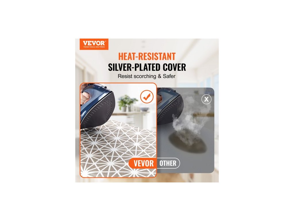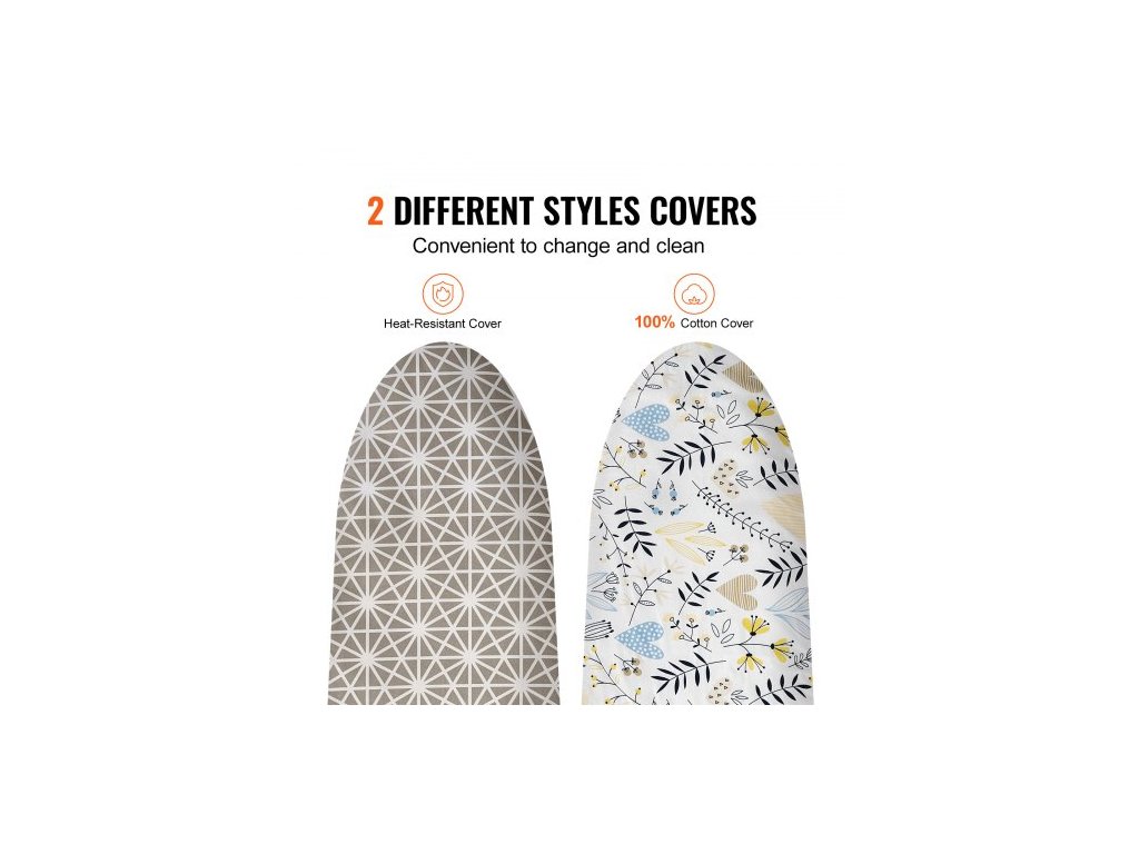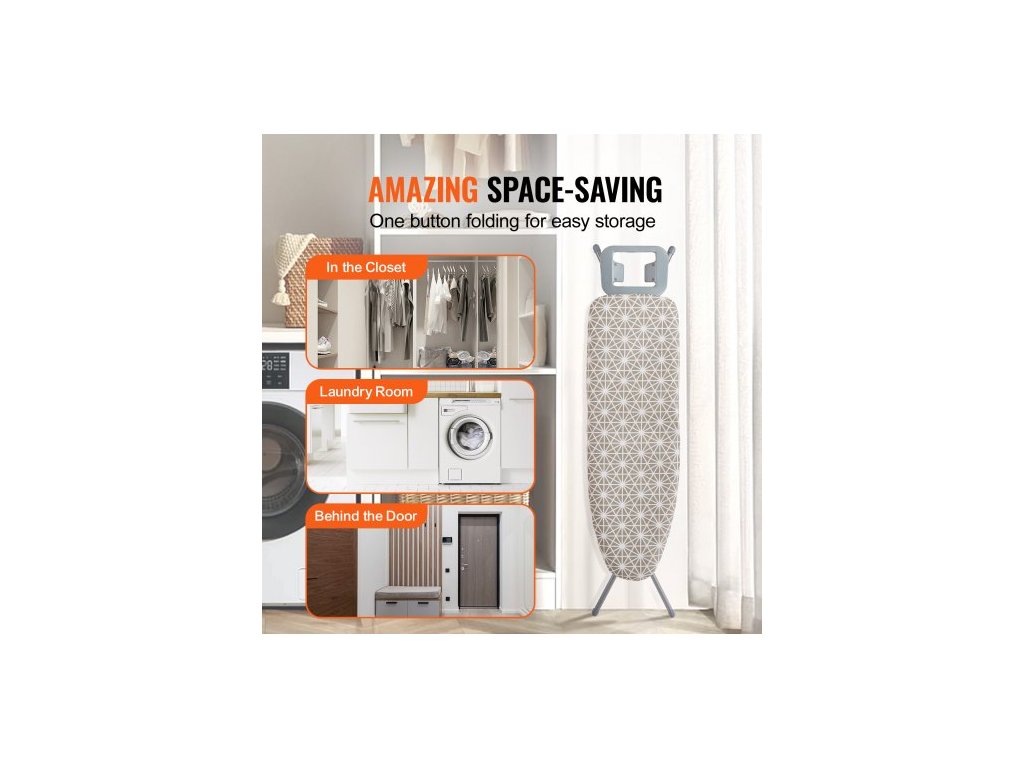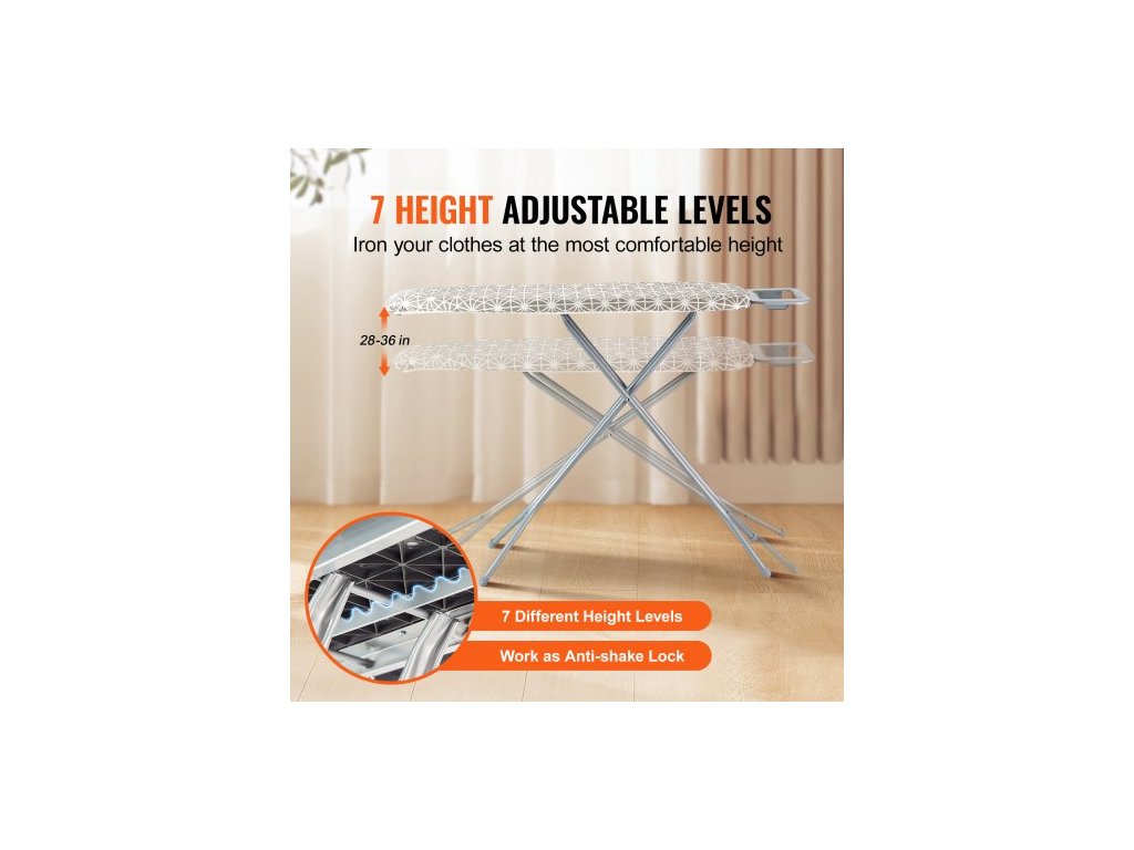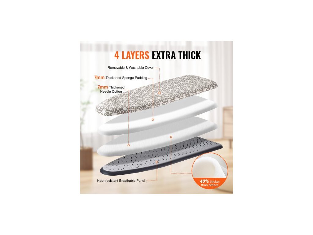Žehlicí prkno s velkou žehlicí plochou 51 x 13, zesílená žehlicí deska se 4 vrstvami s tepelně odolným potahem a potahem ze 100% bavlny, 7 nastavitelných výšek žehlicího prkna pro použití v domácí prádelně