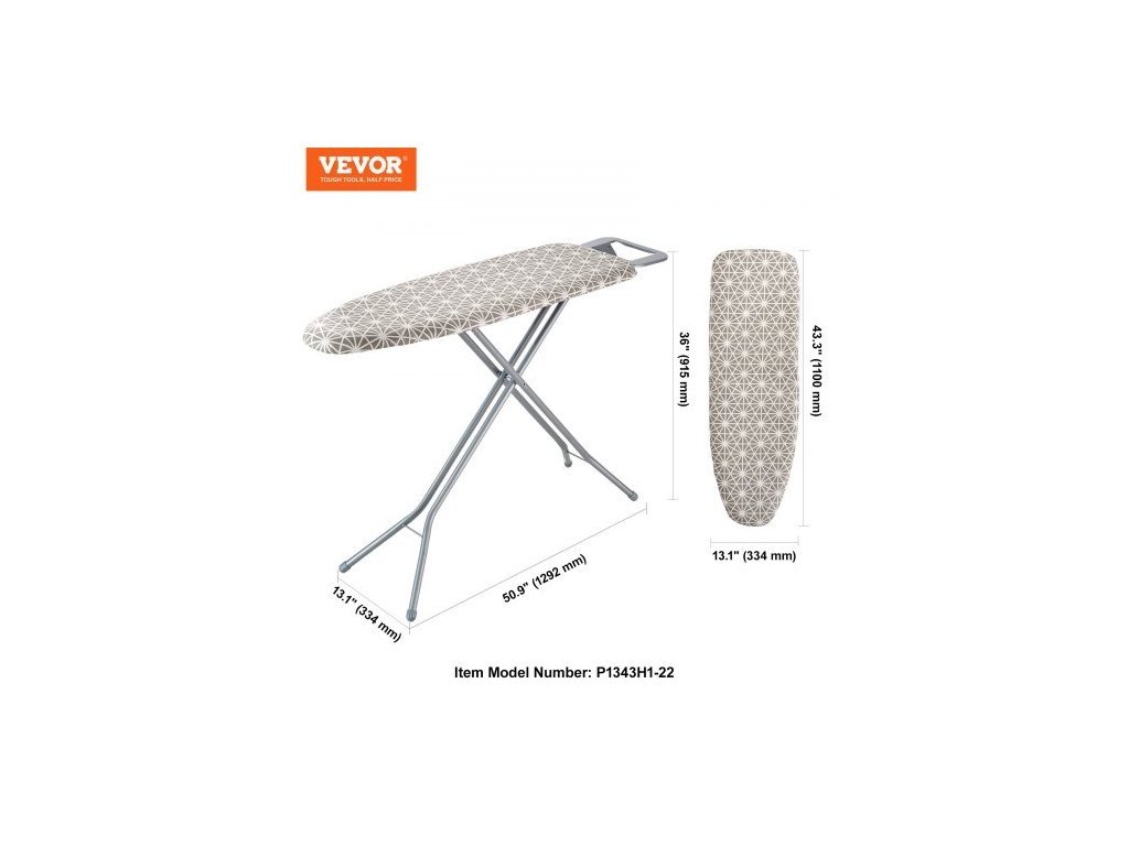 Nastavitelná výška: 28,1-36 palců/715-915 mm, Potah: 1 x 100% bavlněný potah + 1 x tepelně odolný potah, Číslo modelu položky: P1343H1-22, Max. Nosnost: 20 kg, Hmotnost výrobku: 4,35 kg, Materiál vrstev: PP panel + houba + jehlovaná bavlna + žáruvzdorný postříbřený potah, Rozměry žehlicího prkna: 1100 x 334 mm, Hlavní materiál: PP panel + houba + jehlovaná bavlna + žáruvzdorný postříbřený potah + rám Q235, Rozměry výrobku: 1292 x 334 x 915 mm