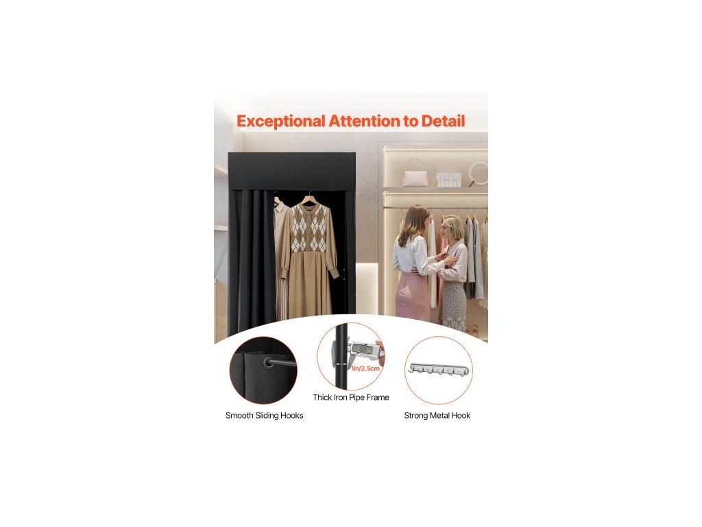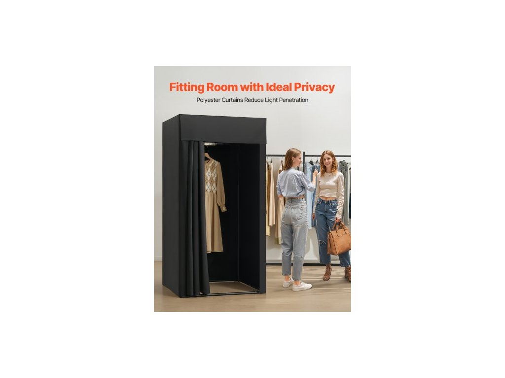 Zkušební kabinka, přenosná šatna s tlustými polyesterovými závěsy, prostor pro soukromí se stínící závěsem a háčkem, pro butik, obchodní centrum, krejčovství a venkovní aktivity 99 x 99 x 198 cm (černá)