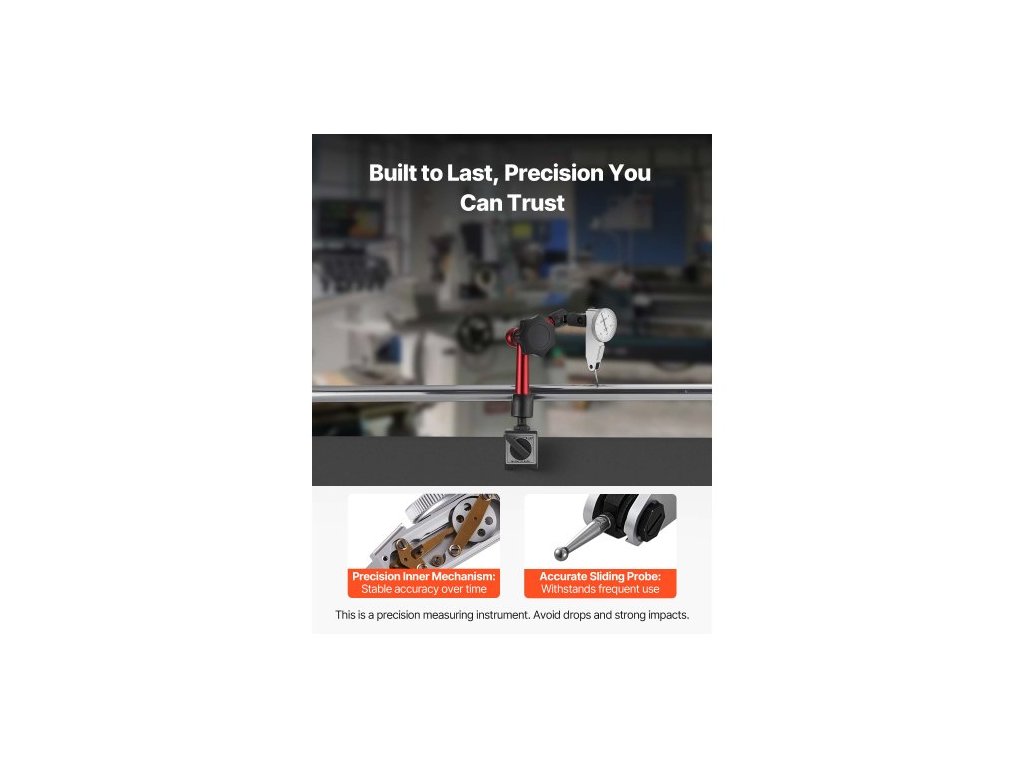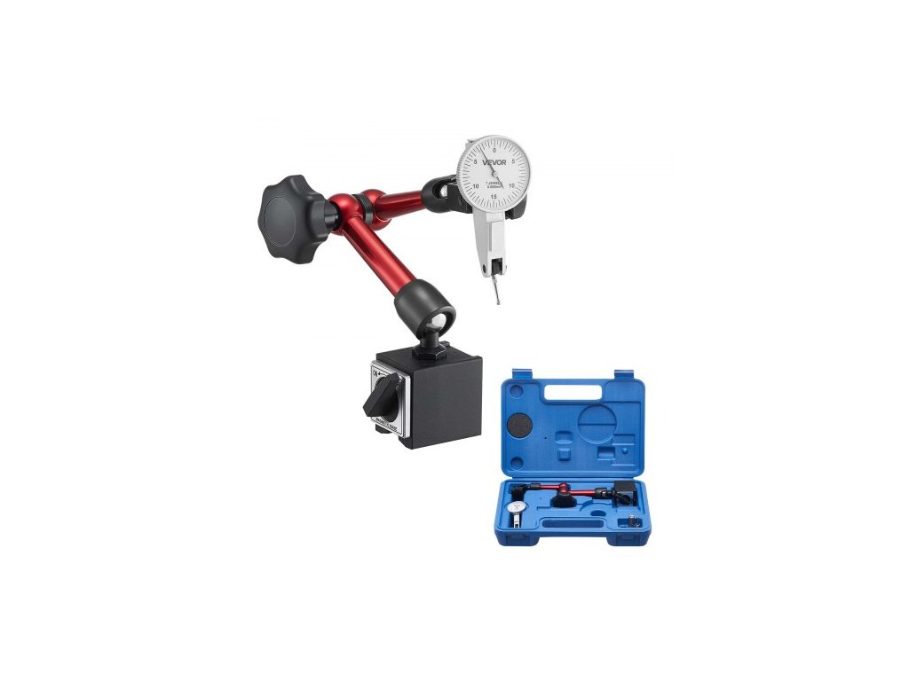 úchylkoměr s univerzální magnetickou základnou a úložným pouzdrem, přesnost 0,01 mm, rozsah 0–0,76 mm, mikrokuličková rukojeť pro měření v úzkých oblastech, průmyslové obrábění a kontrolu