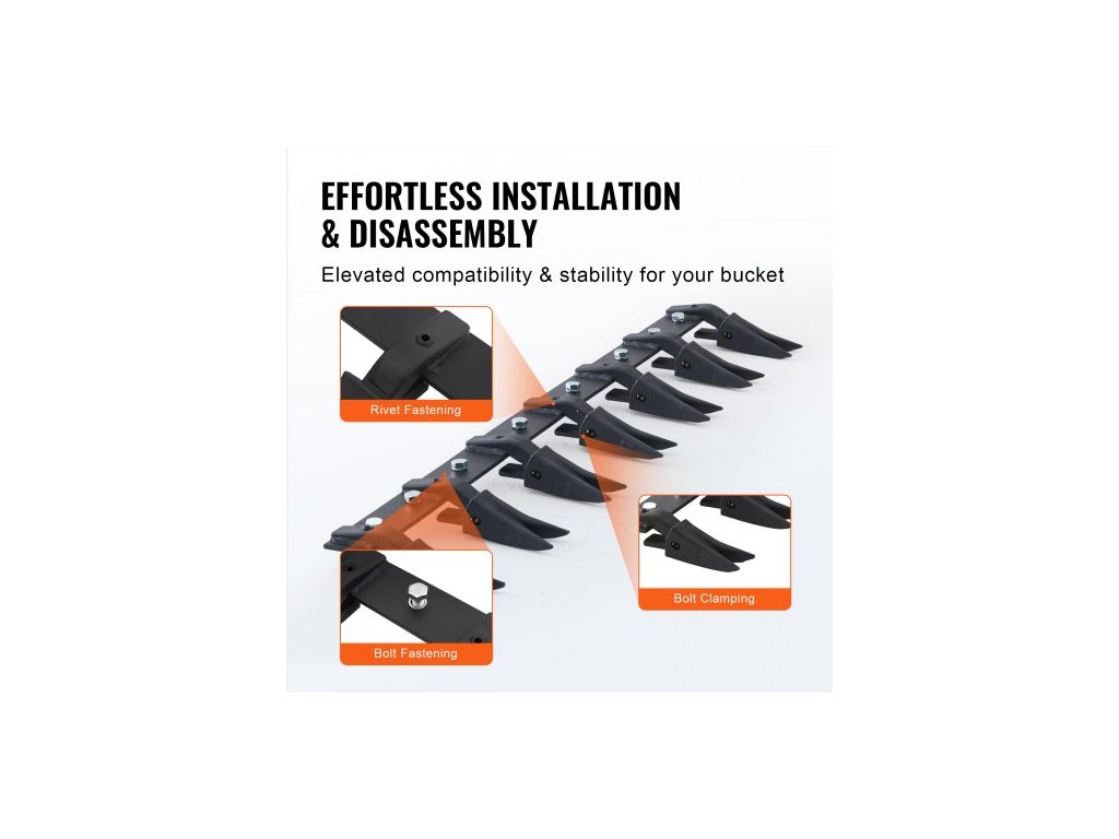 Ozubená lišta na lžíci , 53'', Zubová lišta na lžíci pro těžký provoz a subkompaktní traktorový nakladač, nosnost 4560 liber, pasuje na řezné hrany lžíce o velikosti 1/2" nebo méně, bez nutnosti vrtání