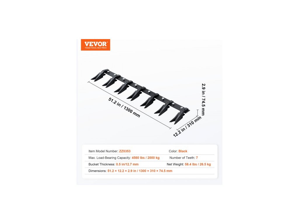 Max. nosnost: 4560 liber/2000 kg,Počet zubů: 7,Barva: Černá,Číslo modelu položky: ZZ0353,Rozměry: 51,2 x 12,2 x 2,9 palce/1300 x 310 x 74,5 mm,Tloušťka lžíce: 0,5 palce/12,7 mm,Čistá hmotnost: 26,5 kg/58,4 liber